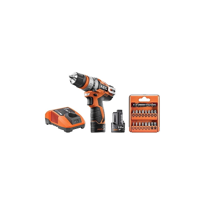 Trapano avvitatore 12V con mandrino removibile. 32 Nm. Fornito con 2 batterie da 2 Ah, caricabatterie e 17 bits.