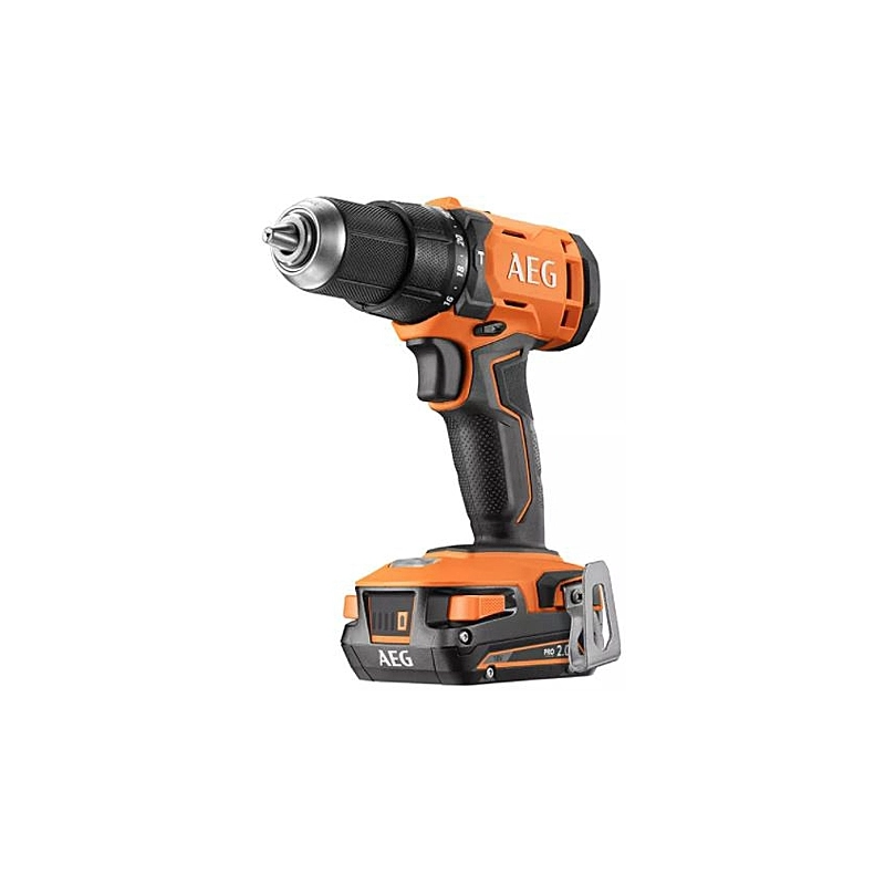 Trapano a percussione a batteria. Mandrino da 13 mm. 2 batterie da 4 Ah. 18V. Capacita' di foratura del metallo 13 mm, del legno 54 mm, della muratura 13 mm. 2 Velocita' 0-500 giri/min, 0-1900 giri/min. Coppia massima 60 Nm. Peso con batteria 1,70 kg.