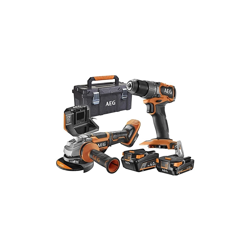 Kit composto da 1 trapano Subcompact (Coppia 65 Nm, velocita' 450/1750 giri/min) e da una smerigliatrice (velocita' a vuoto 11000 giri/min, diametro disco 125 mm). Fornito con 2 batterie: 1 da 2 Ah e 1 da 4 Ah. Con toolbox