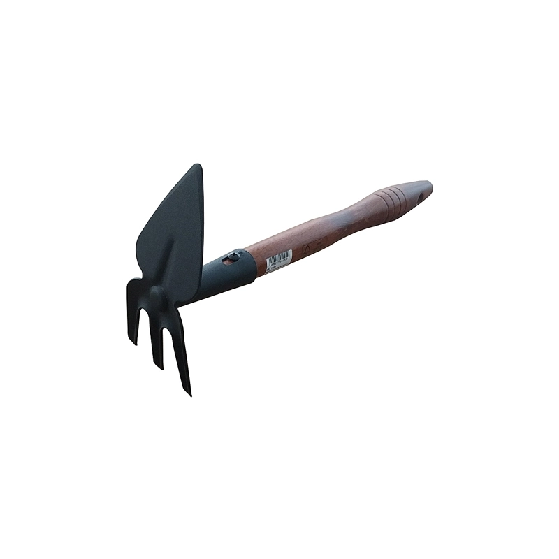 Zappetta a cuore e tridente con lama in acciaio ad alta resistenza, spessore 2 mm. Verniciatura antigraffio di colore nero. Manico in faggio verniciato. Dimensioni 37x17 cm. Made in Italy.