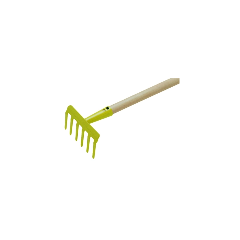 Rastrellino 6 denti con manico biverniciato FSC 100%. Lunghezza manico mm 750 e diametro mm 24