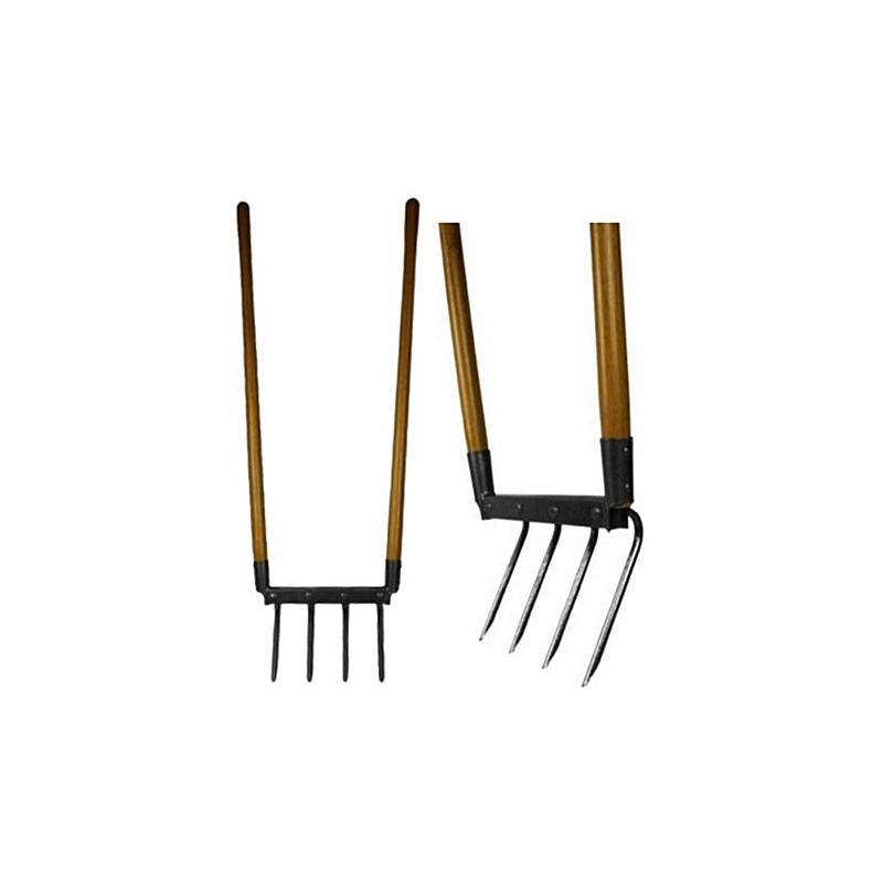Forca con doppio manico e 4 denti. Larghezza 30 cm, altezza 130 cm.