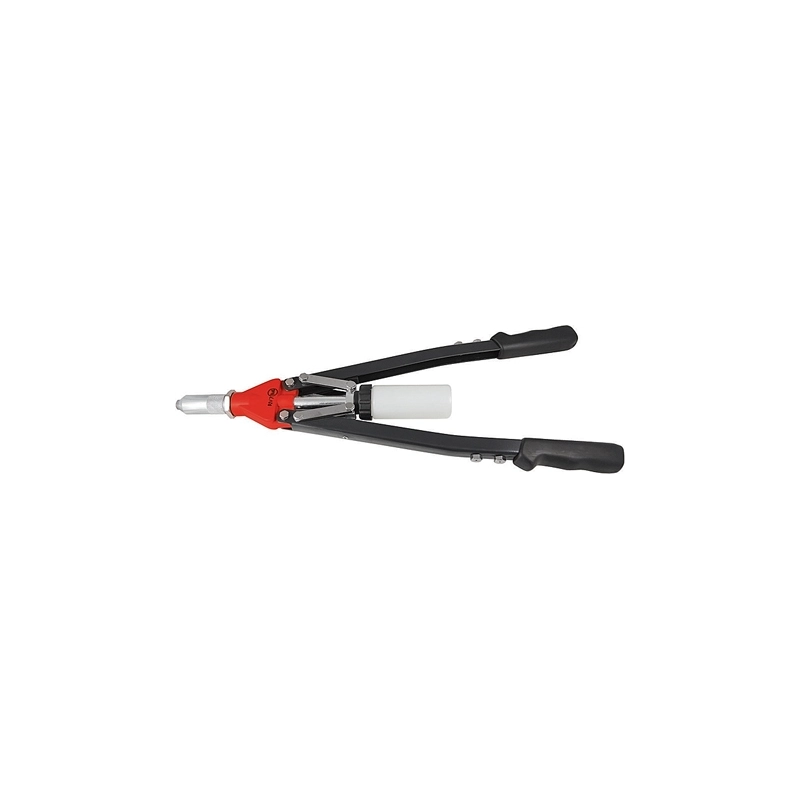 Rivettatrice manuale per rivetti da diametro 3,0 mm fino a diametro 6,4 mm (6,4 mm solo alluminio). Lunghezza 530 mm, peso 1870 gr.