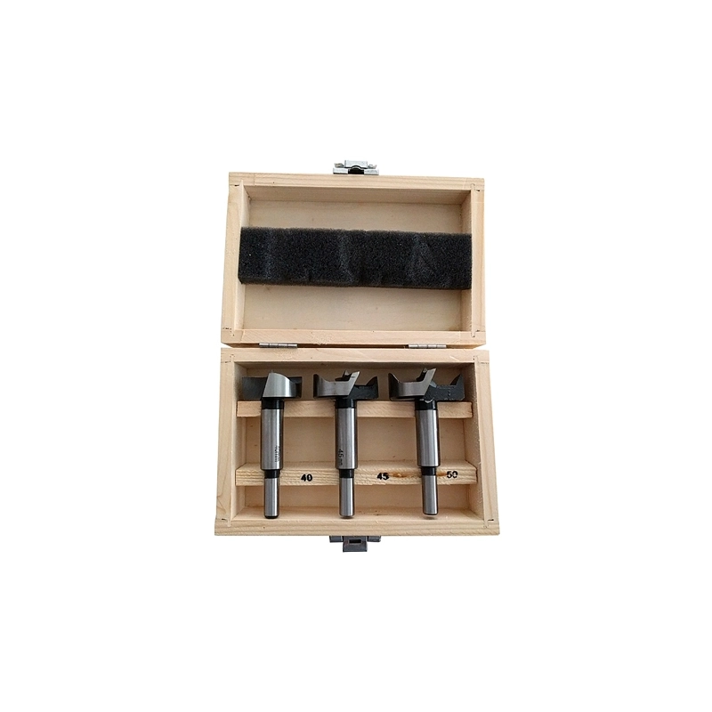 In acciaio a due taglienti e punta centrale. Diametro mm 40-45-50. In cassetta di legno