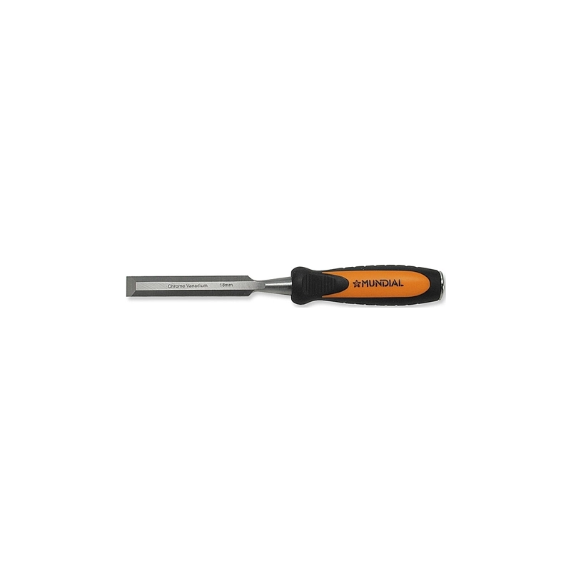 Scalpello per legno in acciaio al cromo vanadio finitura lucida. Impugnatura in acetato. Con battente in acciaio. Modello = misura mm