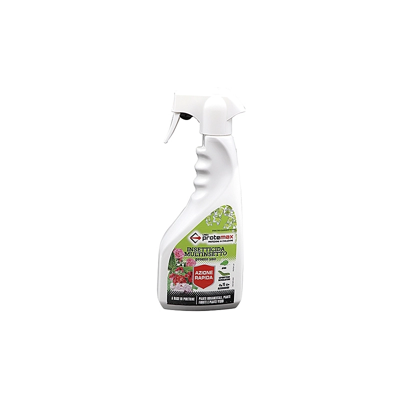 Insetticida multinsetto pronto uso a base di piretrine ad azione rapida. Protegge dall'azione dannosa di insetti come afidi, lepidotteri defogliatori e mosca bianca. Per piante fiorite, ornamentali e verdi. Contenuto 500 ml.