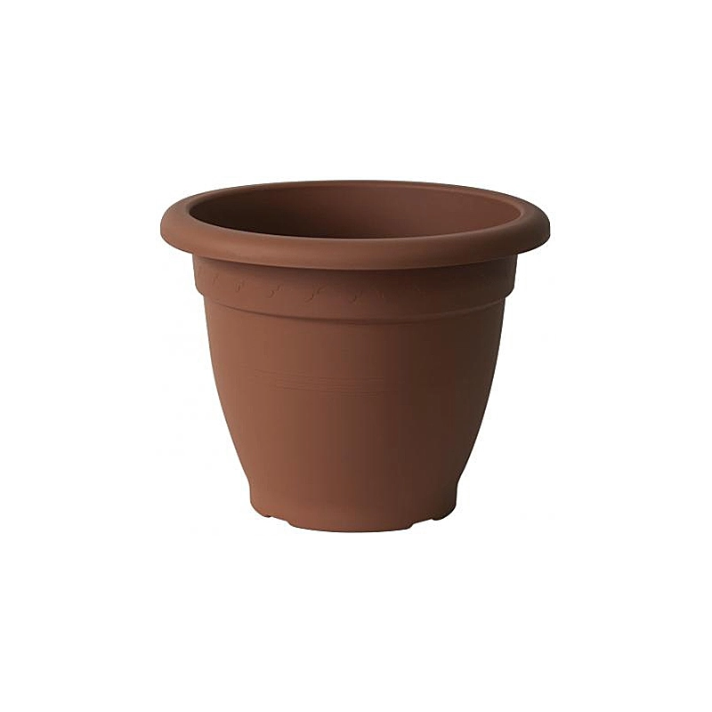 Vaso in polipropilene estremamente resistente agli urti ed alle basse temperature. 100% riciclabile. Impilabile. Resistente ai raggi UV. Con fori. Colore terracotta. Modello = diametro superiore cm/per sottovaso medea cm