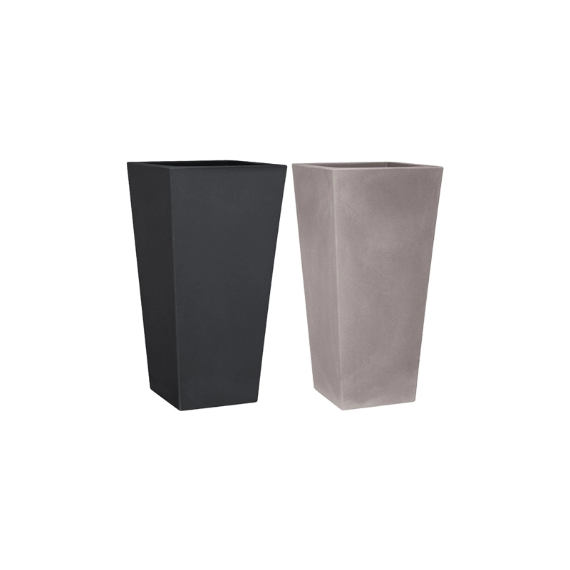 Vaso a base quadrata in resina con superficie matt, leggermente ruvido al tatto. Modello = colore/dimensioni cm