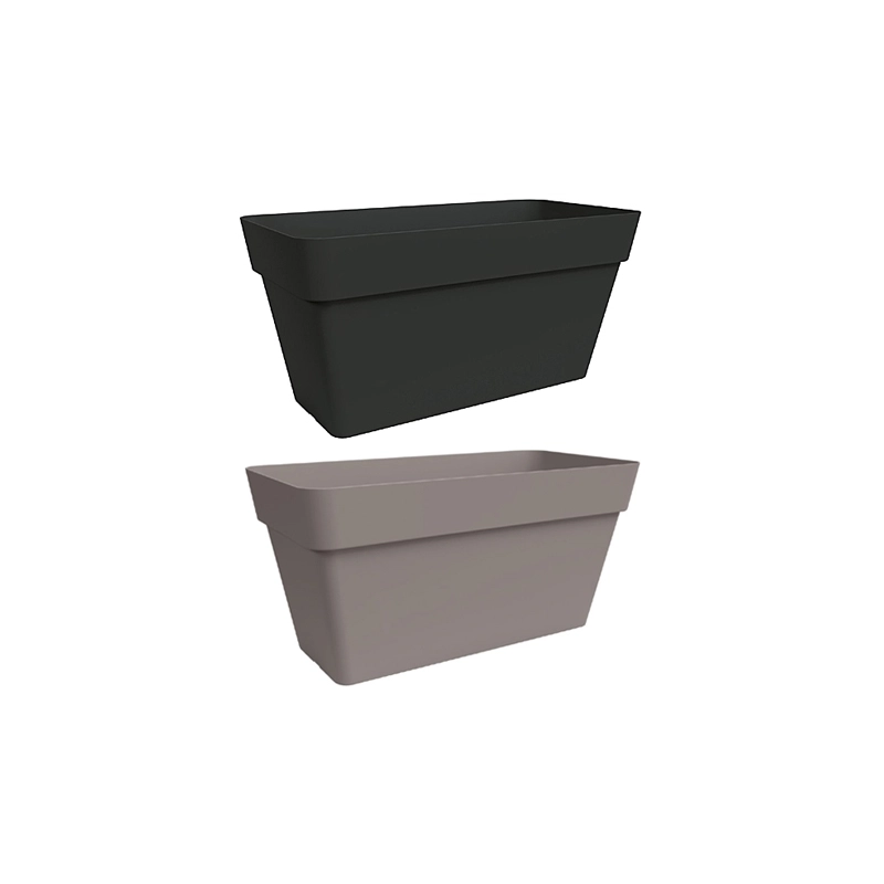 Cassetta realizzata in plastica riciclata. Perfetta sia per interno che per esterno. Prodotto ecologico. Con riserva d'acqua e tirante interno di irrobustimento. Modello = capacita' lt/dimensioni cm/colore