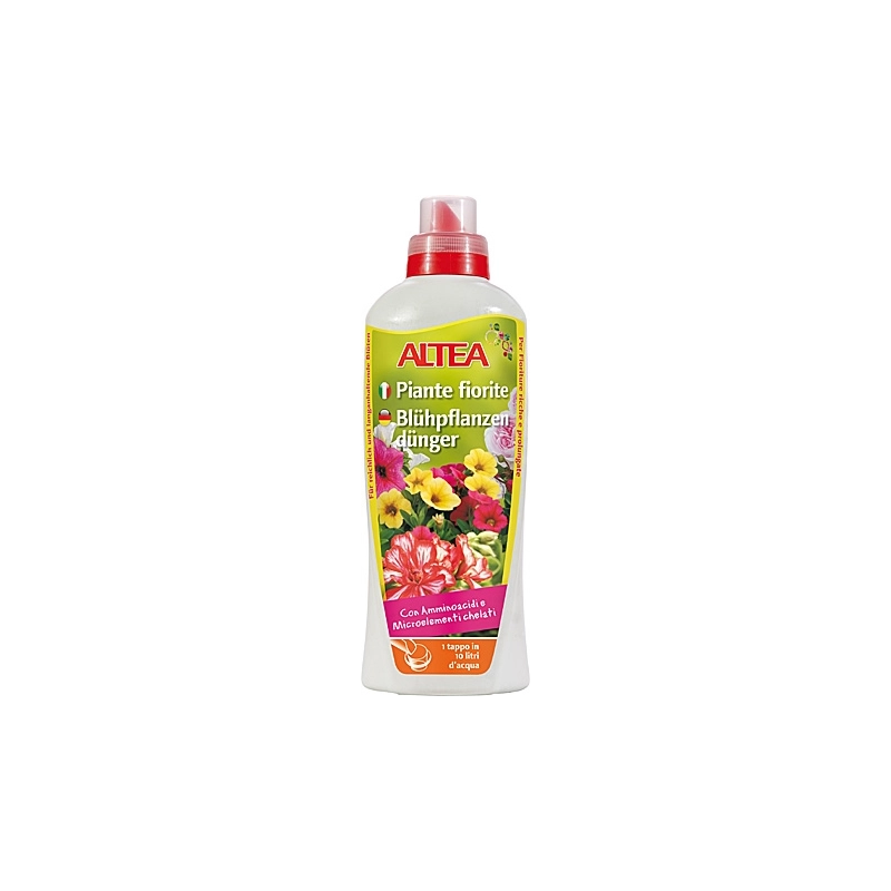 Concime liquido minerale composto ideale per nutrire tutte le piante da fiore. Il suo elevato contenuto di potassio garantisce un'abbondante e prolungata fioritura. Grazie ai suoi microelementi favorisce la colorazione dei fiori. Contenuto 1 lt. Utilizzare 1 tappo misurino ogni 4 lt di acqua.