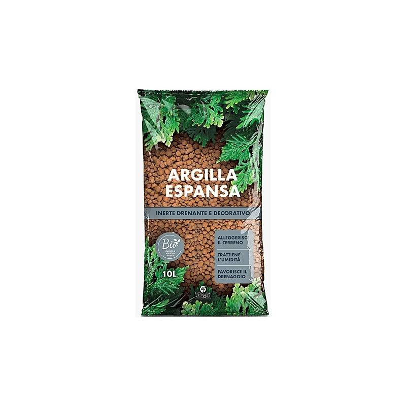 Argilla a PH neutro per florovivaistica e orticoltura con granulometria compresa tra 8 e 15 mm. E' un substrato pulito, neutro, leggero e riciclabile. Sacco da 10 lt.