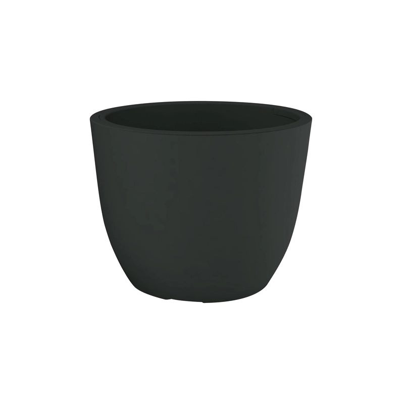Puo' essere utilizzato sia all'interno che all'esterno. Diametro superiore 38,2 cm. Altezza 30 cm. Dotato di vaso interno da 32,9x23,5h cm, comodamente estraibile tramite 2 maniglie a scomparsa. Contenuto 18 lt. Colore antracite opaco.