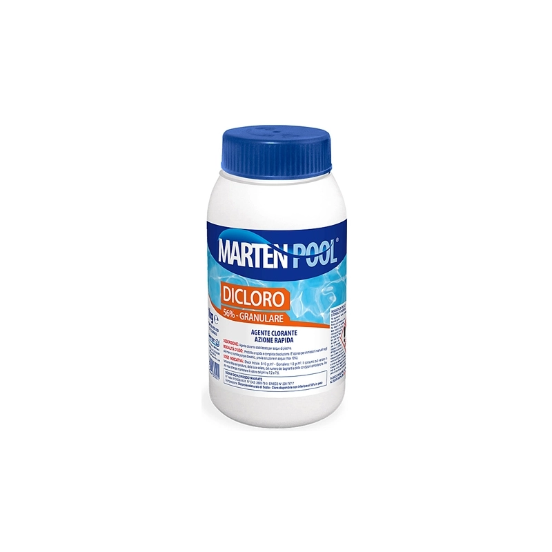Agente clorante stabilizzato per acque di piscina. Prodotto a rapida e completa dissoluzione. Shock iniziale 5-10 gr/m3. - giornaliera 1-3 gr/m3. Il consumo puo' variare in funzione della temperatura, della luce solare, del numero dei bagnanti e delle condizioni atmosferiche. Per una resa ottimale mantenere il valore del PH tra 7,2 e 7,6. Modello = contenuto kg