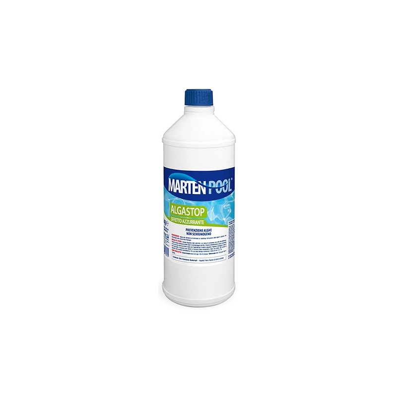 Ideale per prevenire ed eliminare la fastidiosa formazione delle alghe in piscina. Non schiumogeno alle normali dosi d'impiego. Versare Algastop nello skimmer o in vasca di compenso una volta alla settimana. Dosaggio: shock iniziale circa 3 lt ogni 100 m3 d'acqua, settimanale circa 1 lt ogni 100 m3 d'acqua. Effetto azzurrante. Modello = contenuto kg