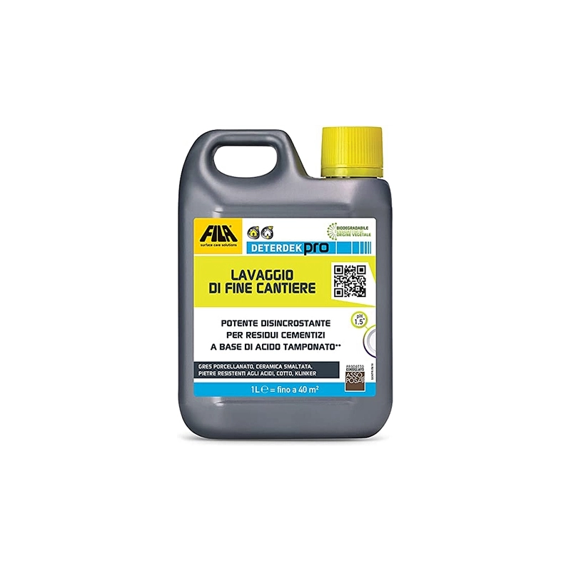 Disincrostante acido per pavimenti. Rimuove le incrostazioni del dopo posa e lo sporco da cantiere. Elimina le efflorescenze saline dal cotto. Elimina il calcare da pavimenti, rivestimenti e sanitari. Efficace contro le macchie di ruggine. Non altera l'aspetto e la colorazione dei materiali. Pulisce ma non aggredisce. Non rovina le fughe. Prodotto da diluire 1:5-1:10. Modello = Contenuto lt