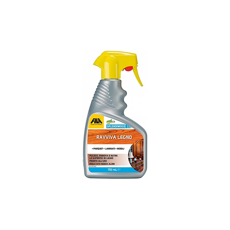 Detergente spray per legno (tavoli, porte e mobili). Pulisce a fondo i pavimenti in parquet verniciato, laminato e trattati ad olio o a cera. Praticissima confezione con impugnatura ergonomica e dosatore a spruzzo. Asciuga in fretta: non serve risciacquare. Non aggredisce la finitura. Contenuto 750 ml.