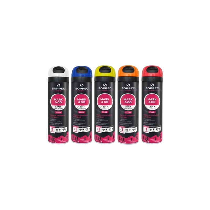 Spray a base gesso ideale per marcature temporanee (meno di un mese). Alta visibilita'. Linee fini e precise: perfetto per tracciare percorsi, aree o segnalazioni. Adatto per eventi sportivi, manifestazioni, fiere, segnaletica e molto altro. Fino a 210 mt di segnatura. Contenuto 500 ml. Modello = colore