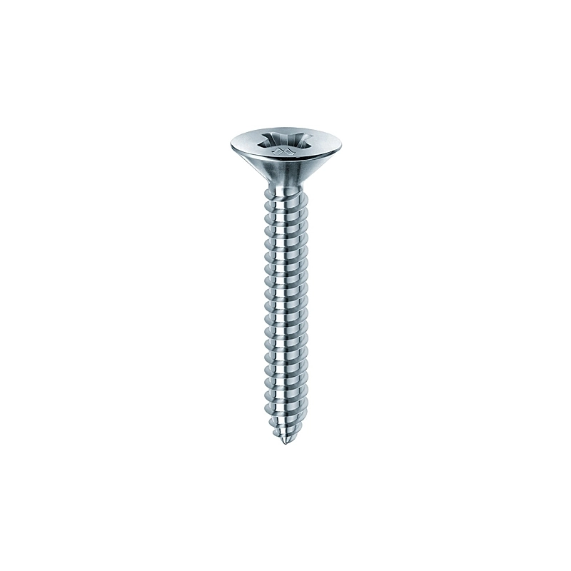 Testa svasata piana con cava a croce PH. Zincate. Impiego: lamiere e laminati metallici. Modello = diametro mm/lunghezza mm