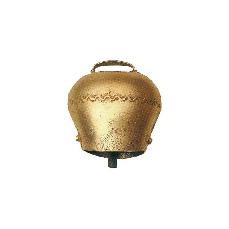 Materiale: acciaio ottonato. Decorazione in rilievo. Modello = larghezza bocca campana mm./dimensioni passante cintura mm.