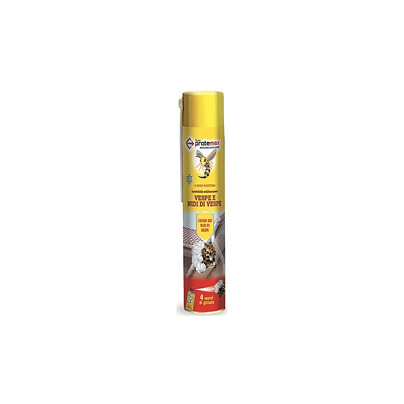 Schiuma spray insetticida per vespe e nidi di vespa. Particolare formulazione che previene la riformazione del nido. Lunga gittata: 4 metri. La schiuma immobilizza le vespe e ne impedisce la fuga. Con cannuccia erogatrice che permette di trattare in sicurezza anche le zone nascoste. Contenuto 750 ml.