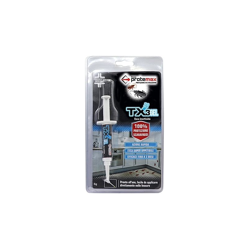 Esca insetticida in gel in siringa pronta all'uso, efficace contro le principali specie di scarafaggi. Esca super appetibile. Azione rapida ed efficace fino a 3 mesi. Facile da applicare direttamente nelle fessure. Contenuto 5 gr.