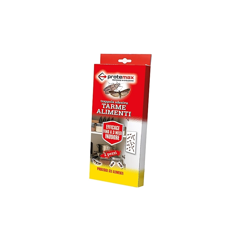 Trappola adesiva con feromone attrattivo per proteggere gli alimenti della dispensa quali farina, pane, pasta, biscotti, cereali e riso dall'aggressione delle Tignole delle derrate alimentari. Senza insetticida, inodore. In confezione da 2 pezzi.