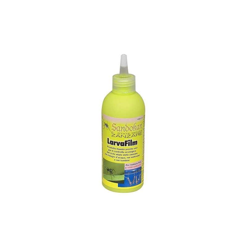 Larvicida che crea uno strato sottilissimo sulla superficie dell'acqua trattata. Questo impedisce agli stadi giovanili delle zanzare di mantenersi in superficie ostacolandone l'assunzione di ossigeno atmosferico e causandone il soffocamento. Non e' un'insetticida e non inquina l'ambiente trattato. Diluibile in acqua 1 ml ogni 2 mq di superficie. Con tappo dosatore contagocce. Contenuto 150 ml.