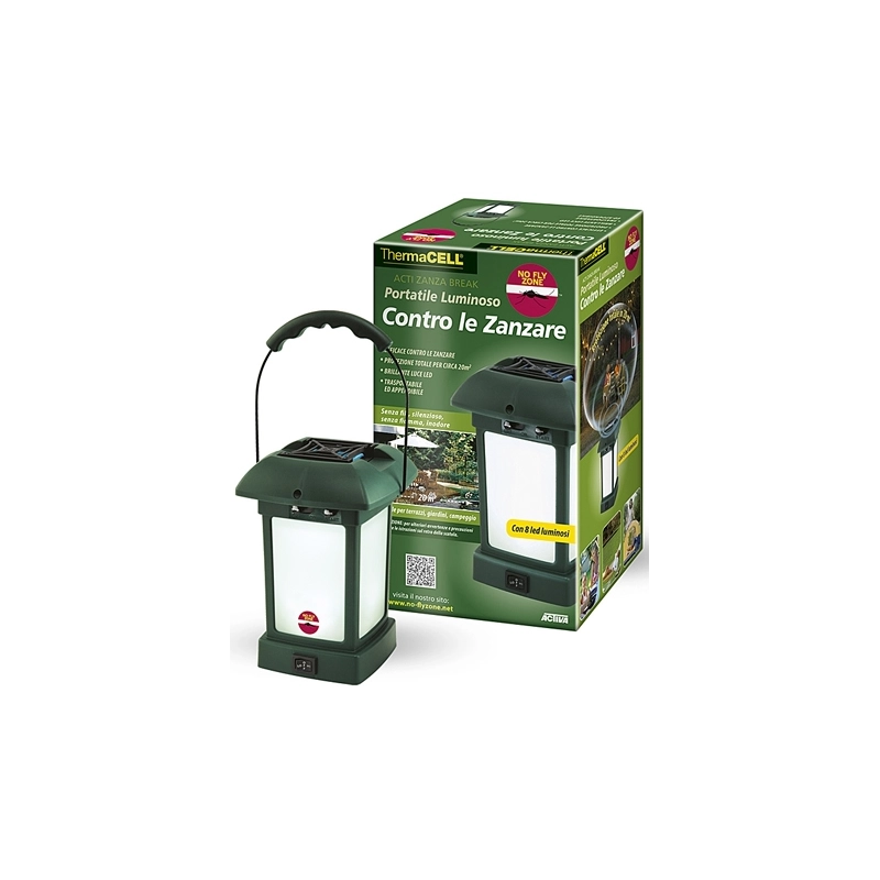 Evaporatore a piastrine alimentato con cartuccia di gas butano, niente fumo, ne odore. Efficace anche con la zanzara tigre. Raggio d'azione m2 20. Lanterna a 8 Led lumininosi. Trasportabile e appendibile. Inclusi nella confezione 1 cartuccia di gas butano e 3 piastrine.