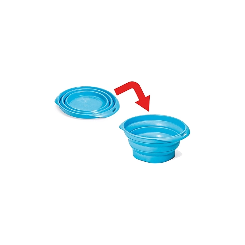 Ciotola pieghevole da viaggio. Ideale per scampagnate o gite fuori porta. Colori assortiti. Modello = dimensioni cm/capacita' lt