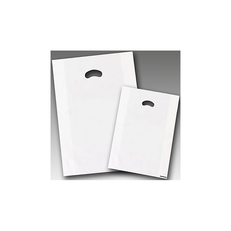Sacchetti con manico a fagiolo riutilizzabili. Spessore 60 my. Confezione da 10 kg. Colore bianco. Modello = dimensioni cm