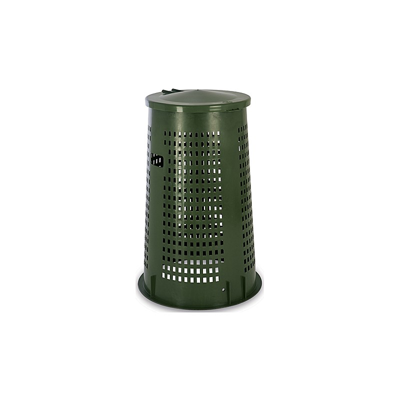 Trespolo pesante e stabile dotato di reggisacco. Diametri (sup.e inf.) cm 38-50. Altezza cm 82. Capacita' l 110. Colore verde.