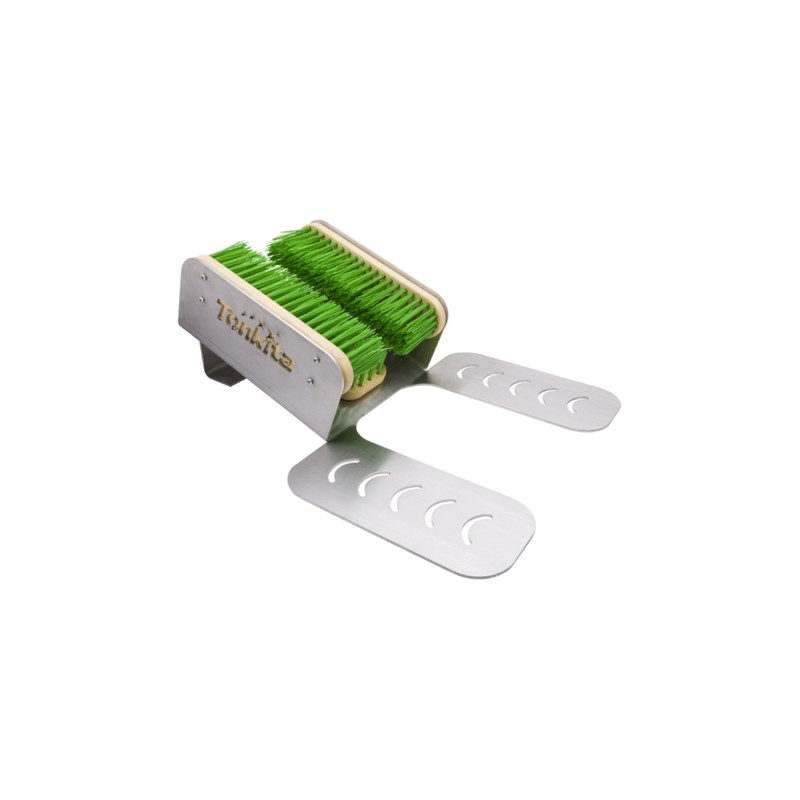 Pulisci scarpe e scarponi da esterno. Telaio inclinato in acciaio inox con spazzole in setole rigide posizionate a U, utili per spazzolare la scarpa su ogni lato rimuovendo lo sporco pesante come neve, fango ed erba. Adatto per centri sportivi, alberghi e baite di montagna. Dimensioni 50x62x23,5h cm.
