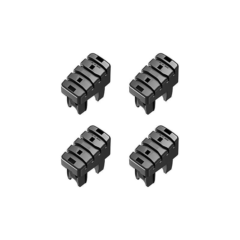 Piedini in plastica. 2 piedini anteriori misura 43x20 mm, 2 piedini posteriori misura 35x20 mm e 2 ganci da 43 e da 35 mm.