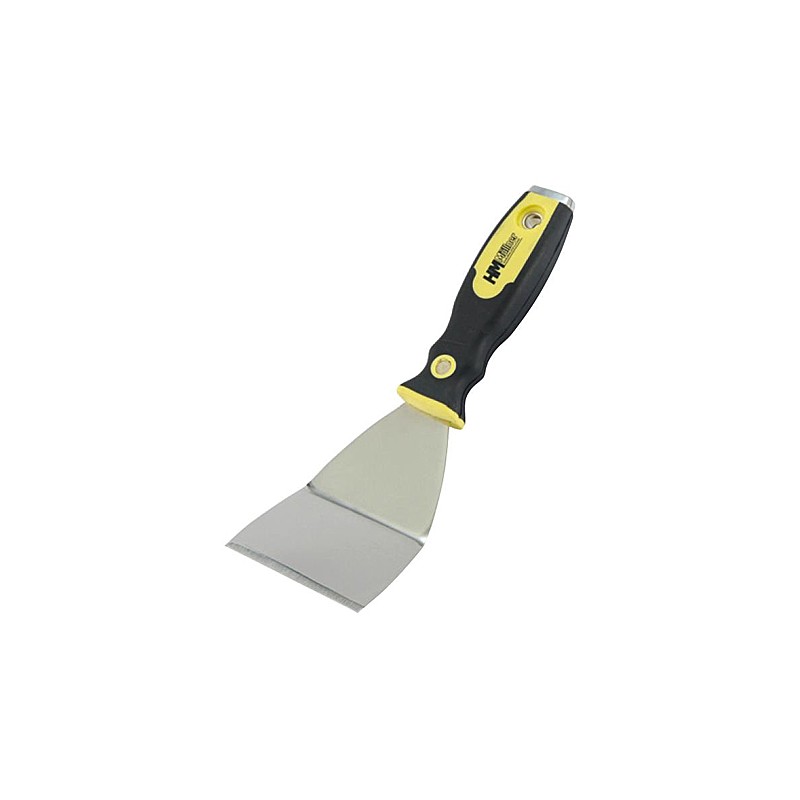 Lama piegata in acciaio inox. Larghezza 75 mm, impugnatura ergonomica in plastica bicomponente.